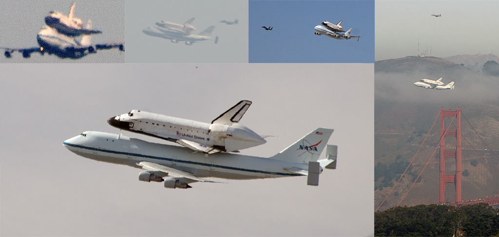 (Photo taken from Twin Peaks viewing area as the shuttle passed southbound on top of its 747 “carrier” around 10:15am PDT)